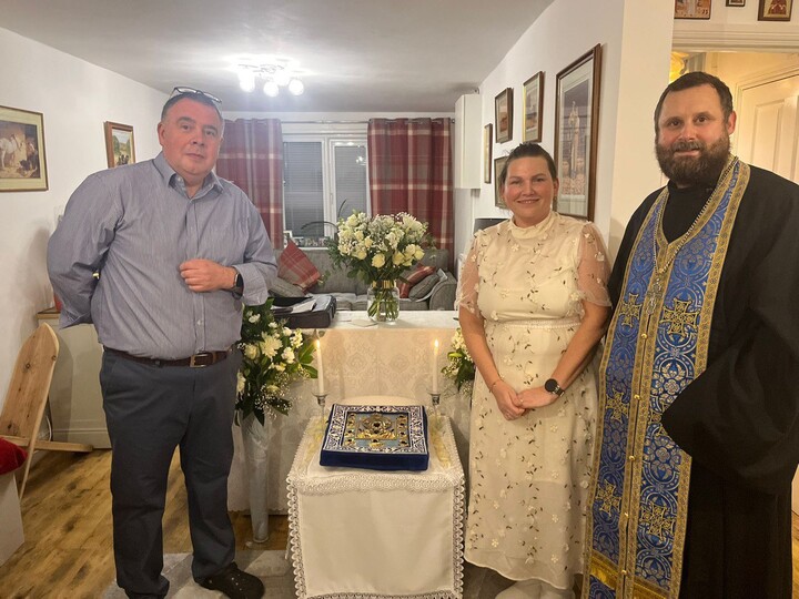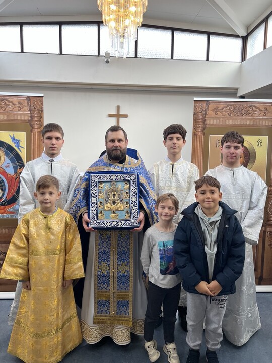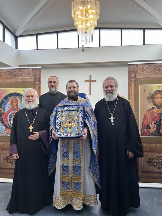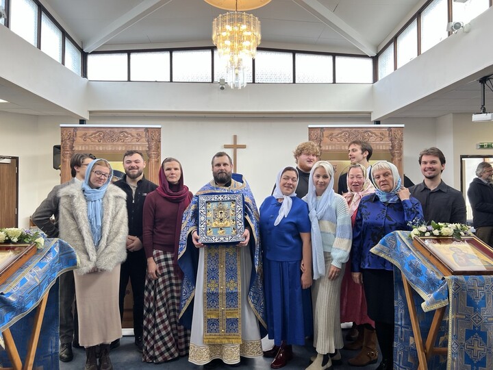 Zu Beginn der Großen Vesper wurde die Ikone von Erzpriester Luke Holden, Priester Mark Fisher und Hierodiakon Avraamy (Gregoriev) feierlich in der Kirche begrüßt. Pfarrer Mark Underwood, der sich derzeit in Genesung befindet, erwartete die Ikone mit großer Freude zu Hause. Mehr als 50 Gläubige nahmen an der Vesper teil.