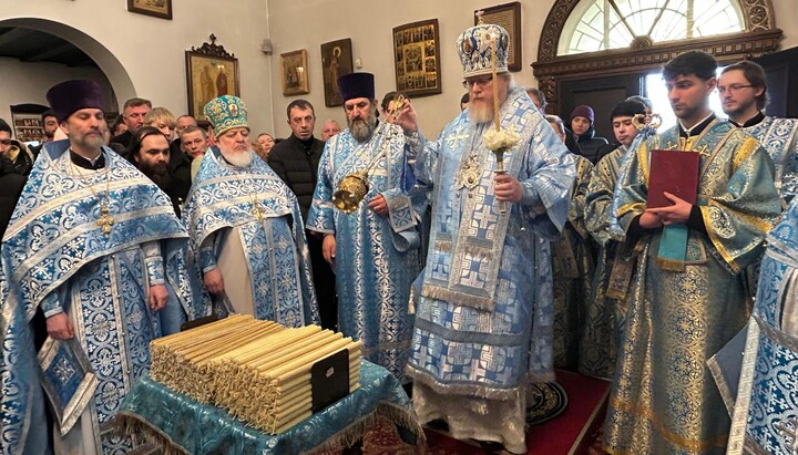 Nach der Liturgie sang der Klerus vor der Festikone einen Lobgesang; anschließend segnete Erzbischof Tichon die Kerzen und besprengte sie mit Weihwasser.