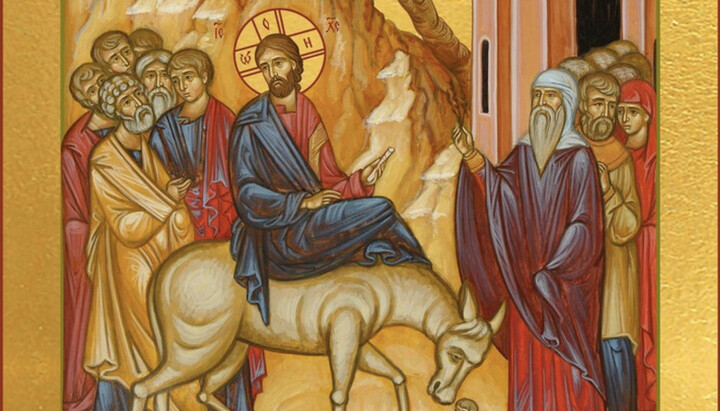 Der selige Theophylakt von Bulgarien sah in den weggeworfenen Kleidern ein tiefes Symbol: „Sie breiten Christus ihre Kleider unter, das heißt, sie unterwerfen das Fleisch dem Geist.“ Auf der Ikone tun die Kinder dies nicht mit dem Verstand, sondern mit dem Körper.