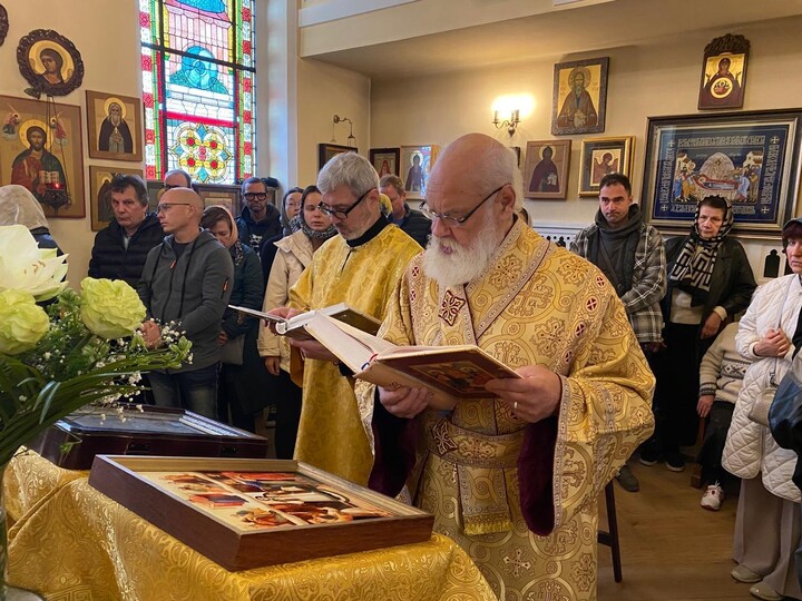 Am darauffolgenden Tag feierte Erzbischof Tichon die Göttliche Liturgie in der Kirche der Fürbitte der Allerheiligsten Gottesmutter in Düsseldorf. Unterstützt wurde er von mehreren Geistlichen, darunter Priester Michail Cholmezki, Erzpriester Andrei Mammitsch sowie Diakone der Diözese. Der zweisprachige Gottesdienst wurde feierlich begangen und klang mit einem gemeinschaftlichen Mahl aus.