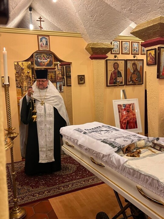 Die Göttliche Liturgie zelebrierte Priester Evgeny Teodor (Bonn), gemeinsam mit Prodekan Priester Mikhail Cholmetsky (Düsseldorf) und Diakon Alexander Panyutin (Gießen). Die anschließende Trauerfeier leitete Priester Mikhail Cholmetsky, unterstützt von Erzpriester Nikolai Sudos (Frankfurt), Priester Evgeny Teodor und Diakon Alexander Panyutin.