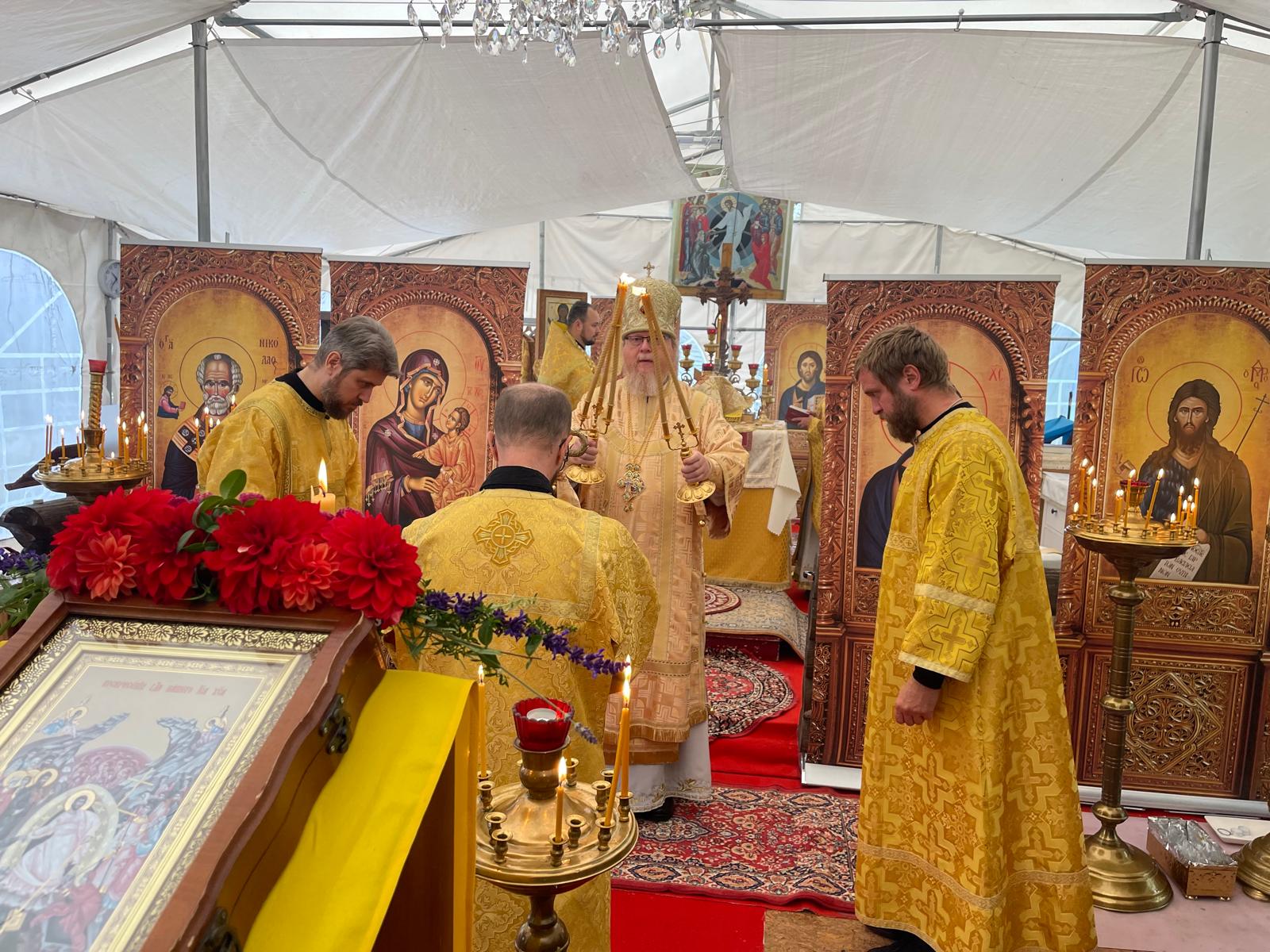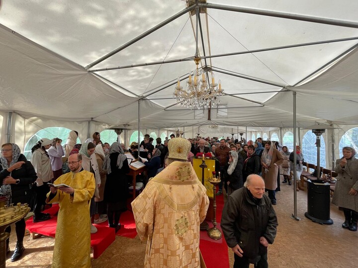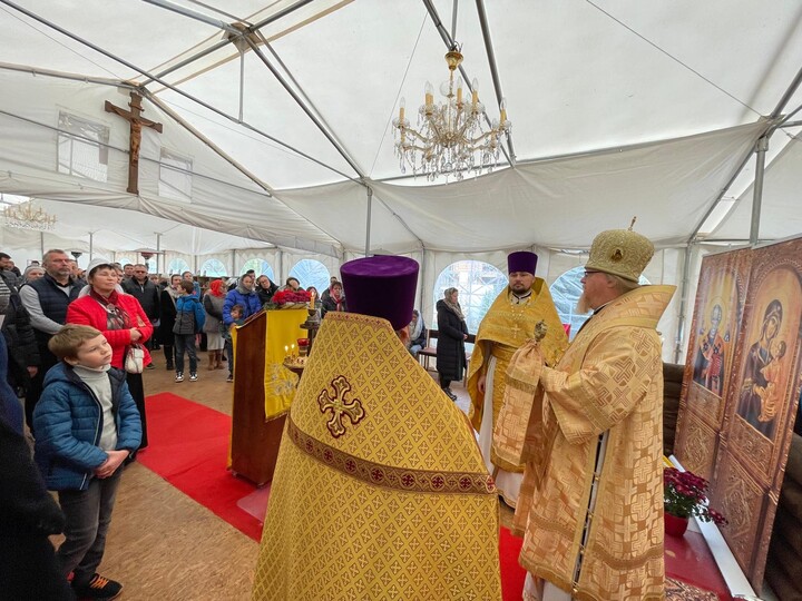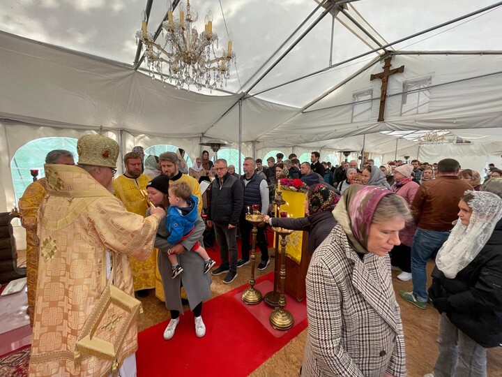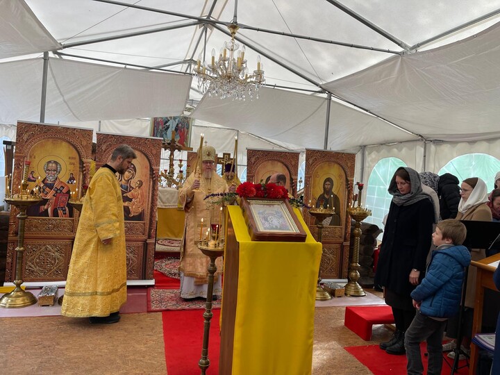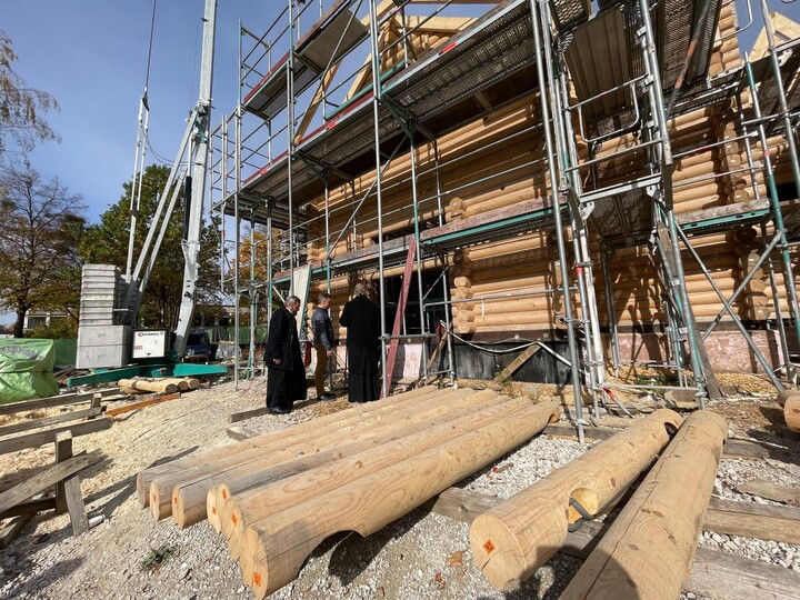 Am Sonntag, dem 19. Oktober, feierte Erzbischof Tichon von Rusa, Administrator der Berliner Diözese der Russischen Orthodoxen Kirche des Moskauer Patriarchats (ROK), die Göttliche Liturgie mit der russisch-orthodoxen Gemeinde „Heilige Auferstehung“ in München. Die Liturgie wurde in einem Zelt direkt auf dem Baugelände gefeiert, wo derzeit eine orthodoxe Holzkirche im traditionellen russischen Stil entsteht. Am Vorabend betete Erzbischof Tichon die Nachtwache in der Kreuzerhöhungskirche der Südlichen Residenz. Darüber berichtete die Diözese auf ihrer Webseite.