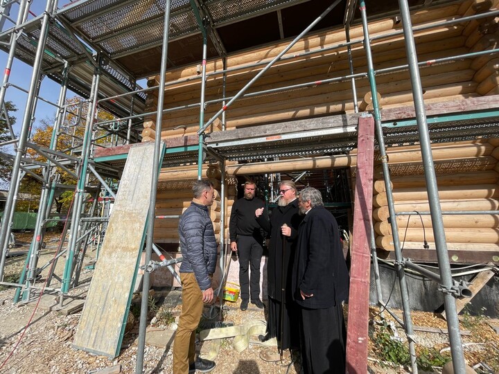 Erzbischof Tichon besichtigte die Baustelle der neuen Holzkirche in München
