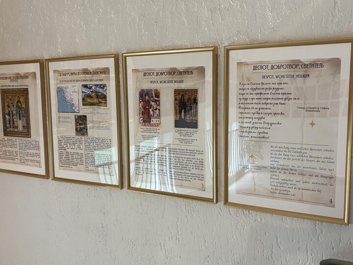 Ein besonderer Höhepunkt war die feierliche Eröffnung einer zweisprachigen Dauerausstellung über das Leben und Wirken der Heiligen Stefan und Jelena. Gemeindepriester Nenad Živković stellte dabei sieben bebilderte Infoplakate vor, die sowohl in serbischer als auch deutscher Sprache über das Vorbild der Schutzheiligen informieren. „Sie sind ein Beispiel sowohl für ein frommes Eheleben als auch für den Dienst am Volk durch die ihnen anvertraute irdische Befehlsgewalt. Die Kirche Gottes erinnert sich an den Heiligen Stefan als gerecht und barmherzig und an Helena, die im Mönchtum den Namen Elisabeth annahm, als fromm", berichtete der Geistliche.