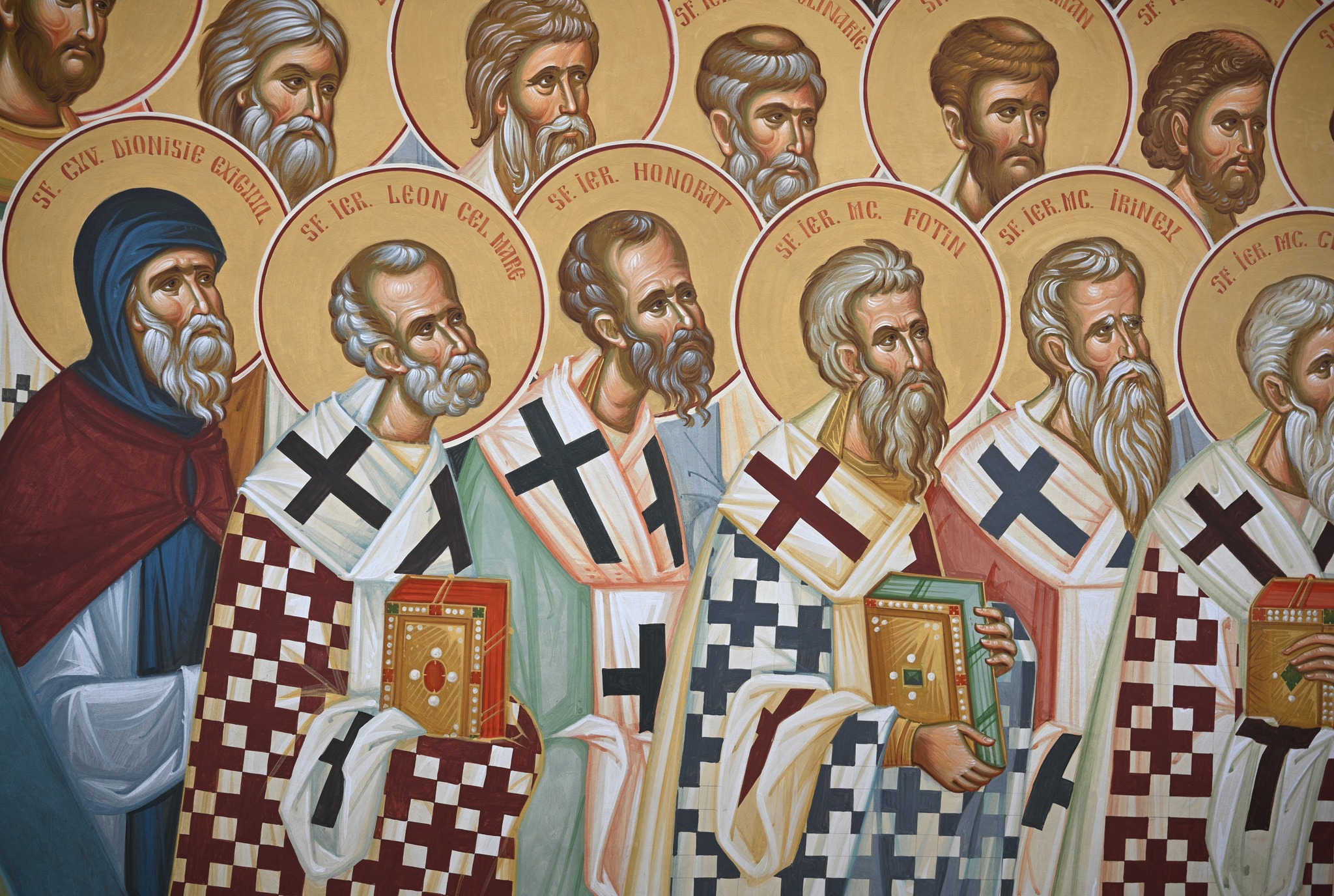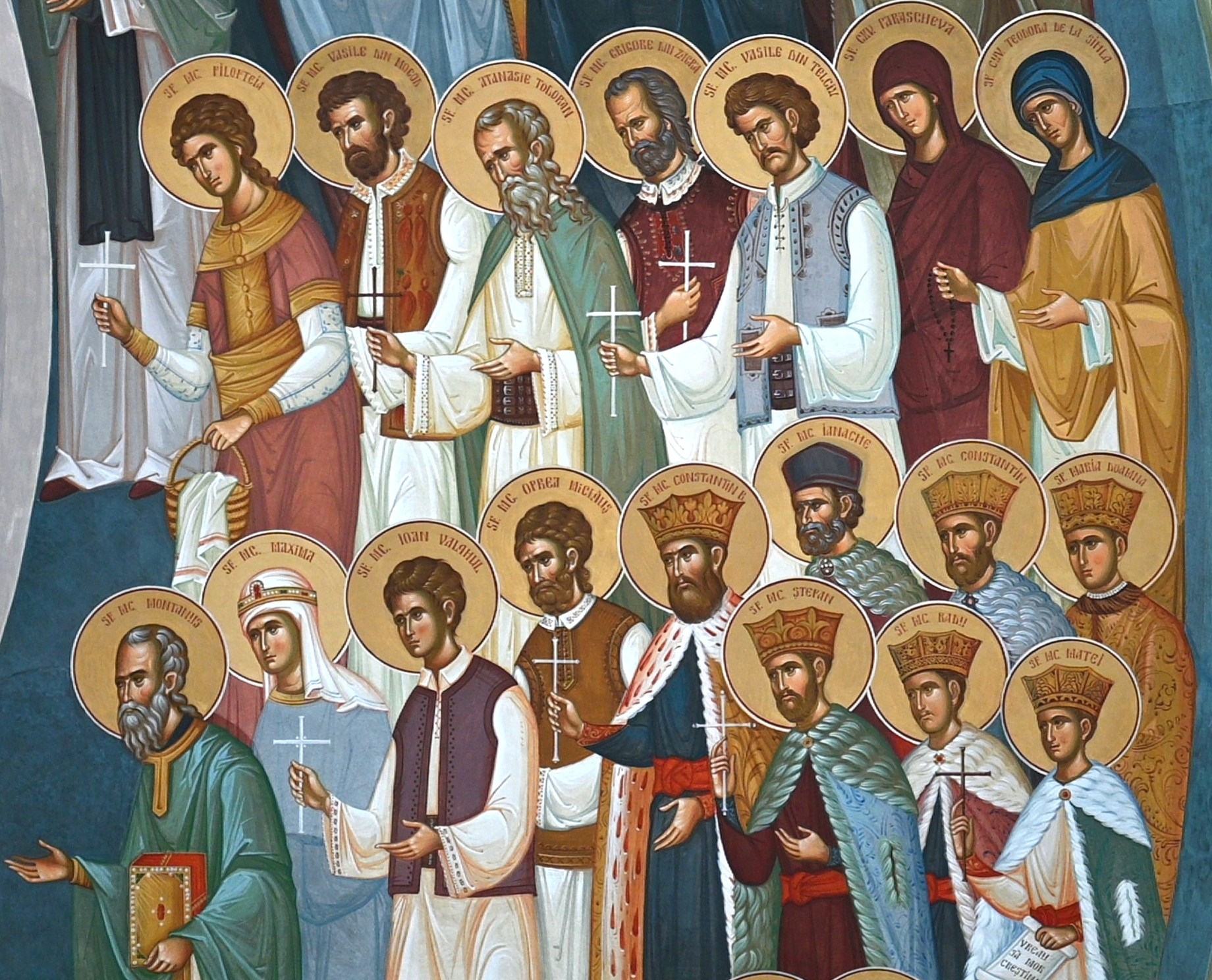 Die Ikone symbolisiert die Vereinigung der Kirche und die Gemeinschaft der Heiligen aller Zeiten. Links sind die Heiligen, die den Westen bekehrten, dargestellt, rechts die rumänischen Heiligen. Oben thronen vier Propheten mit Schriftrollen, im Zentrum steht Christus, umgeben von der Mutter Gottes, Johannes dem Täufer und Engeln. Adam und Eva zu Füßen Christi symbolisieren die Wiederherstellung der menschlichen Natur. Die Heiligen sind hierarchisch geordnet in Reihen von unten nach oben: Hierarchen, Fürsten, Märtyrer und Fromme.