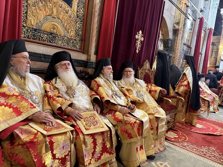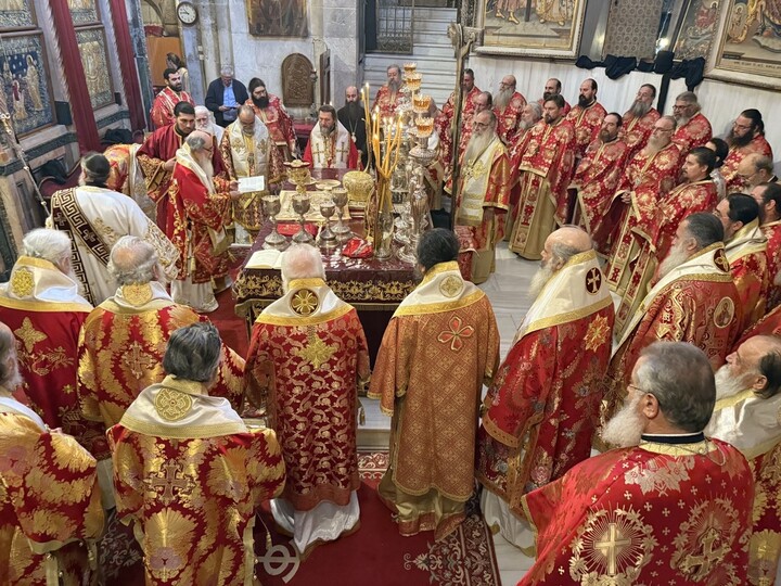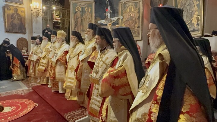 Die über viereinhalbstündige Patriarchalliturgie wurde von Patriarch Theophilus III. geleitet und von rund 30 Bischöfen und zahlreichen Priestern zelebriert (Bericht der UOJ). Auch die Pilger aus der westeuropäischen Diözese nahmen an den Feierlichkeiten teil und beteten für den neuen Abt des Klosters der Heiligen Katharina auf dem Sinai.