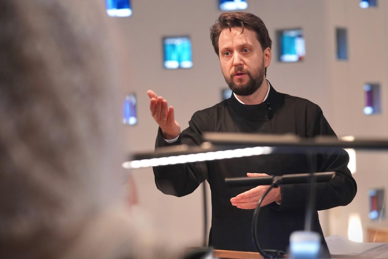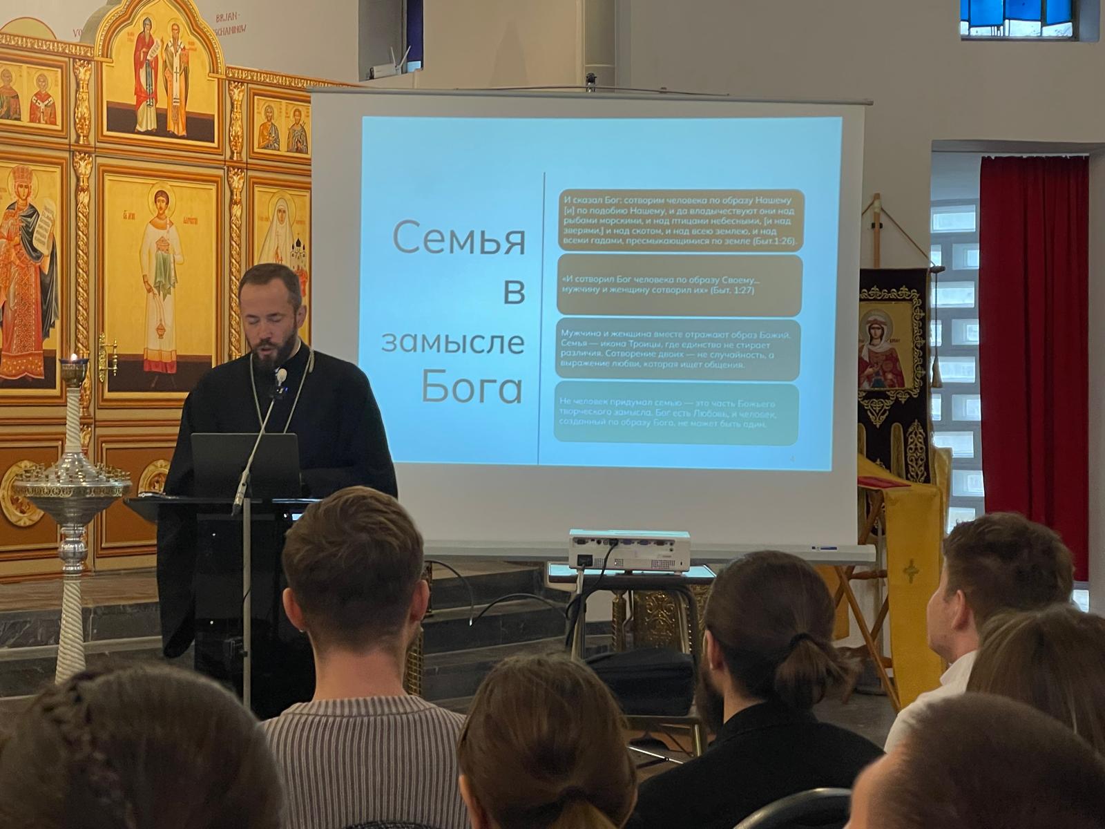 Priester Alexej Veselov von der gastgebenden Gemeinde in Krefeld eröffnete den Vortragsreigen mit dem Thema „Familien- und Elterenschule. Wie kann man lernen, in der Ehe zu leben und Kinder zu erziehen?“