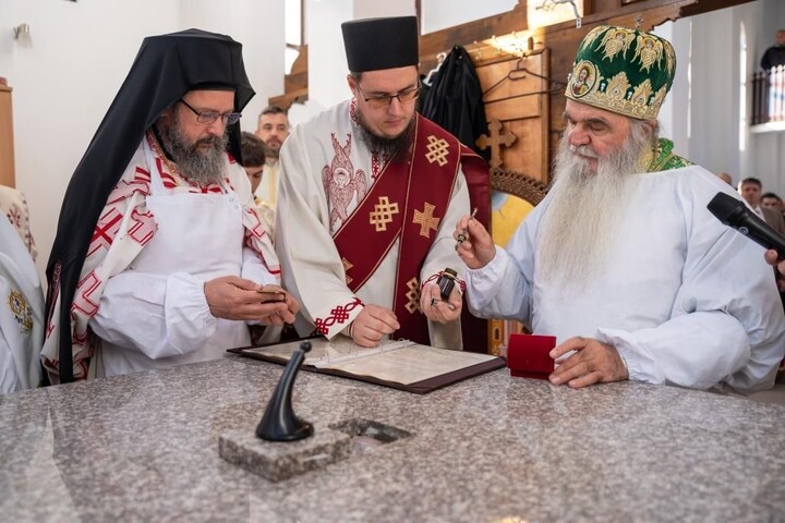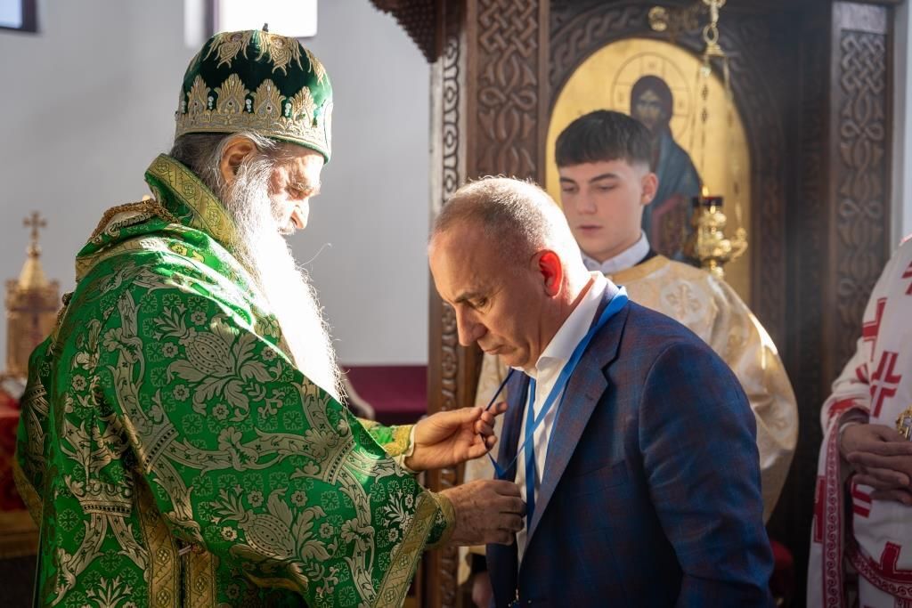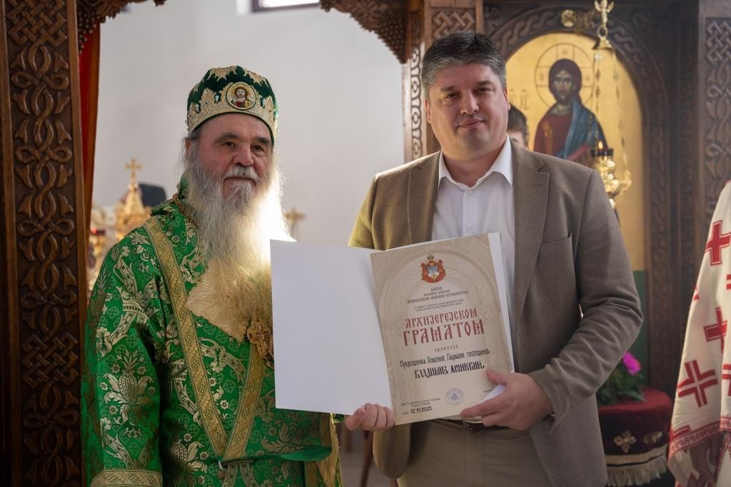 Nach dem Gebet am Ende der Liturgie zeichnete Metropolit David den Priester Milan Banjac für seinen langjährigen Dienst und seinen Einsatz für die Kirche mit dem Rang des Erzpriesters aus. Die Feier endete in einer Atmosphäre tiefer Dankbarkeit und geistiger Freude über die Vollendung eines wichtigen Werkes für die Gläubigen der Region.