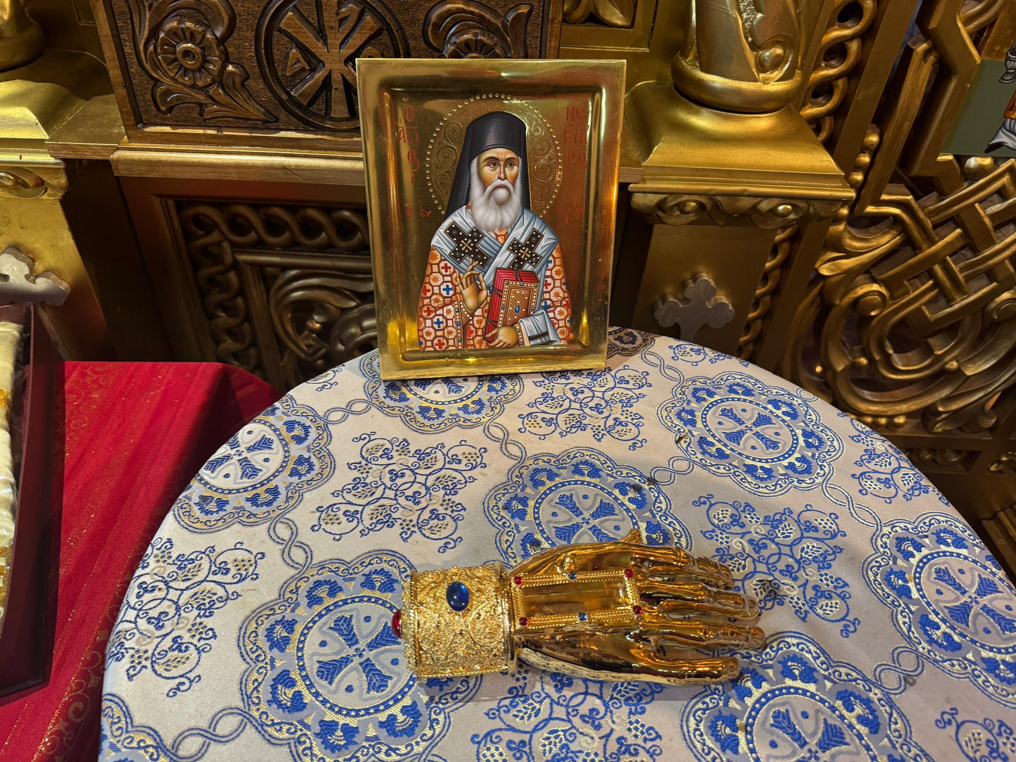 In der rumänisch-orthodoxen Gemeinde „Mariä Verkündigung“ in München wurde am Sonntag, dem 9. November 2025, der heilige Nektarios von Ägina feierlich geehrt. Anlass war die Aufnahme eines kleinen Reliquienteils des Heiligen, der damit zum zweiten Schutzpatron der Gemeinde erklärt wurde. Darüber berichtete die Metropolie mit Sitz in Nürnberg auf ihrer Webseite.