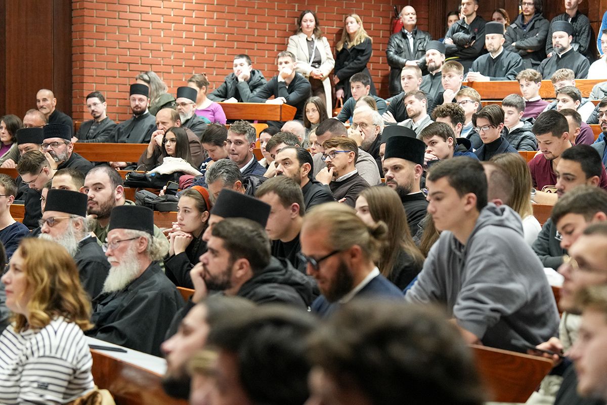 Die Buchvorstellung eröffnete Dekan Prof. Srboljub Ubiparipović. Er unterstrich, dass die Sammlung nicht nur ein wissenschaftliches Projekt, sondern eine Würdigung der Persönlichkeit und des spirituellen Erbes Vater Justins sei, dessen Einfluss eng mit der Fakultät verbunden ist. Der Band vereint 16 Beiträge zum dreifachen Jubiläum: 130. Geburtstag, 45. Todestag und 10 Jahre seit der Überführung seiner Reliquien.