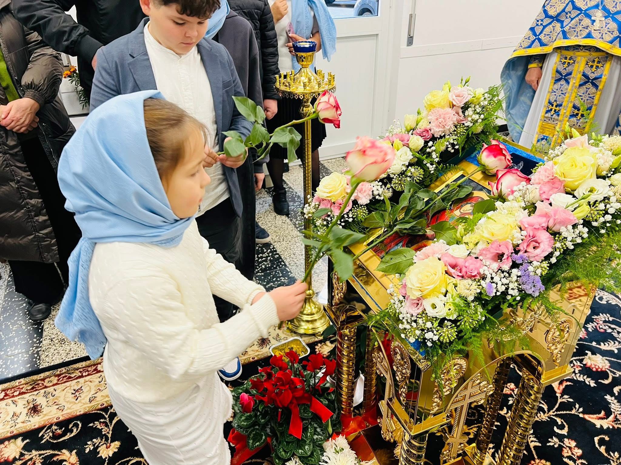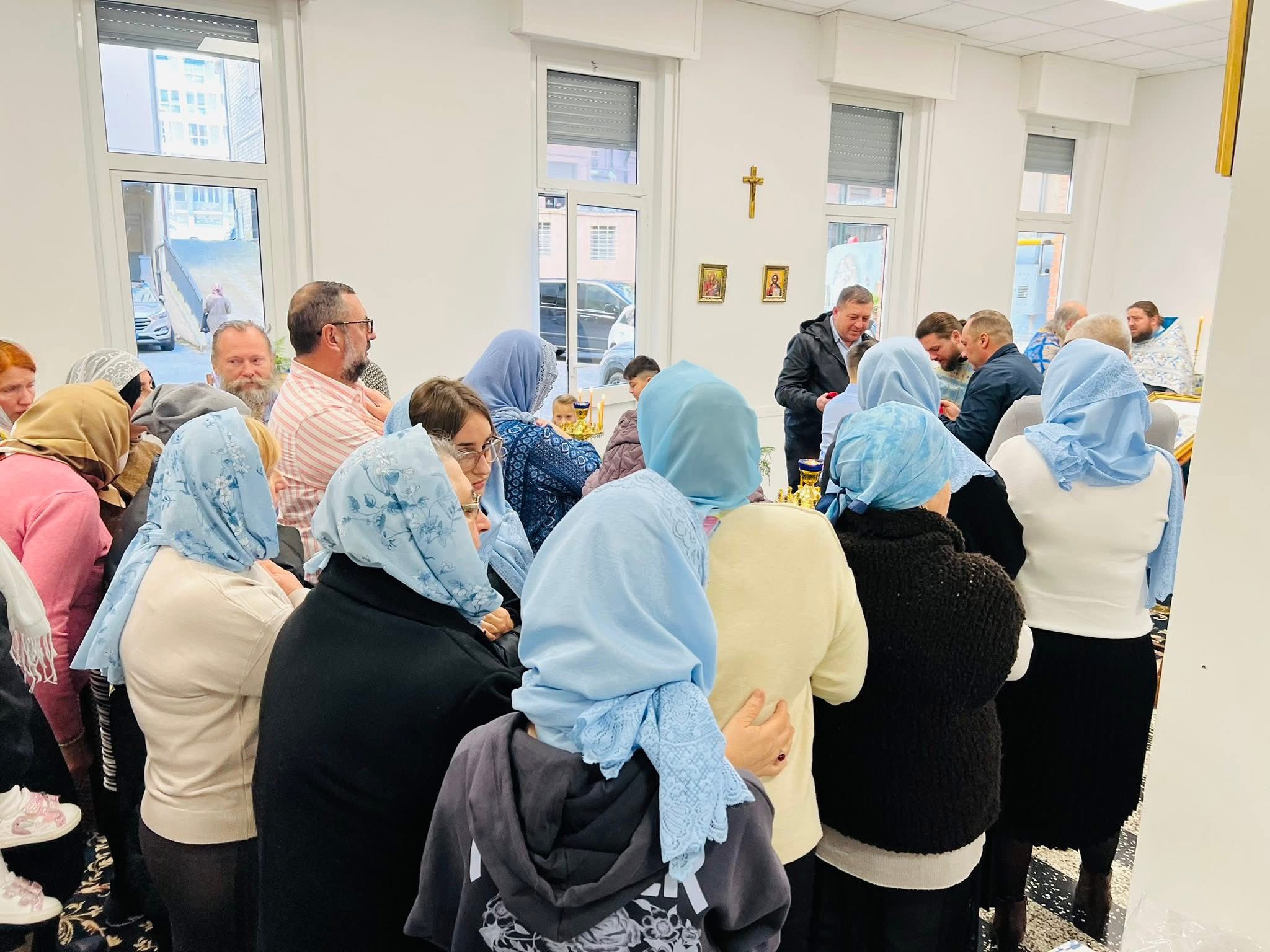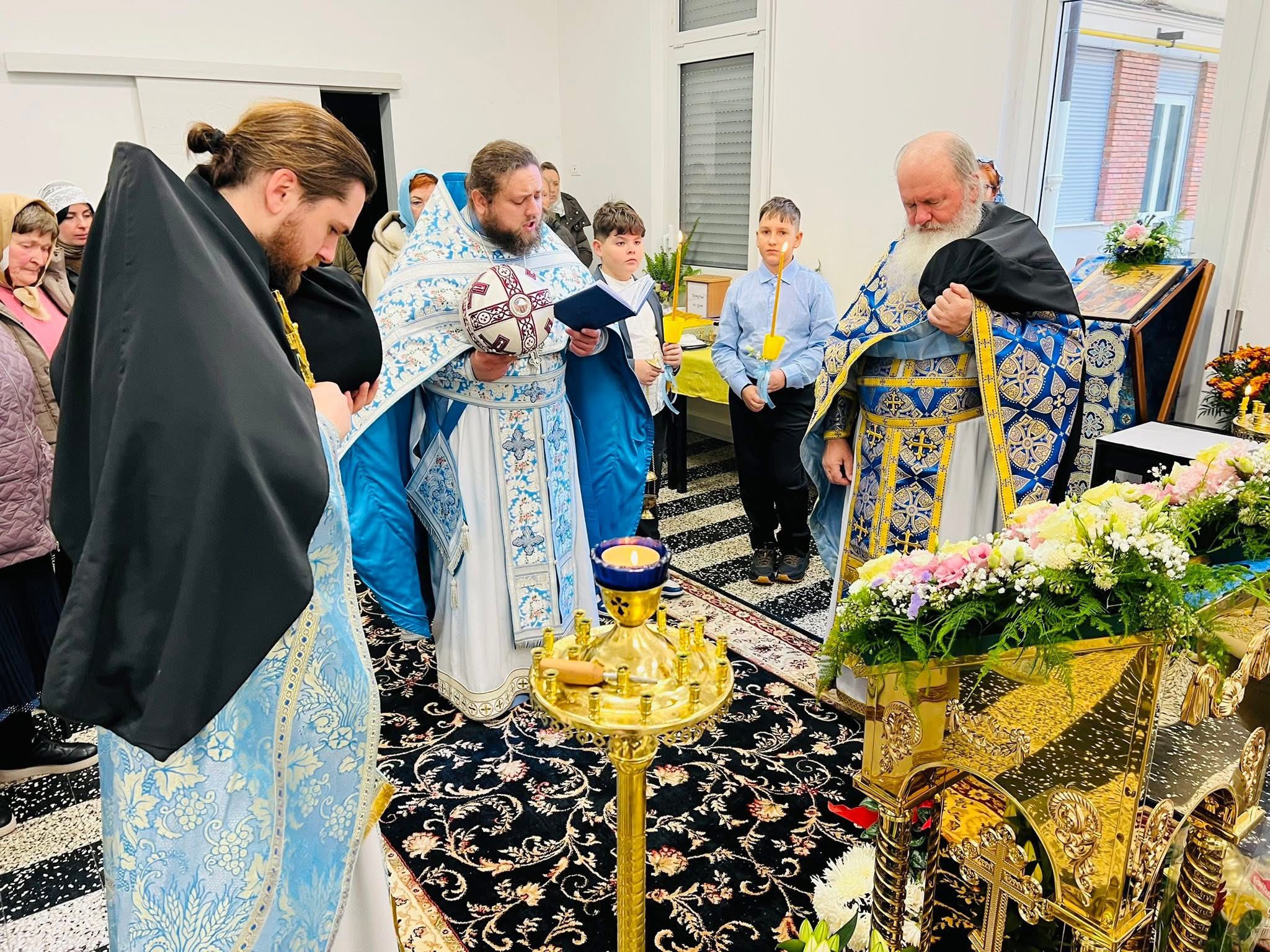 Zum Abschluss dankte Vater Ioann allen für das gemeinsame Gebet, gratulierte der Gemeinde zum Fest, wünschte ihr Stärkung und Wachstum und rief Gottes Segen über die Anwesenden herab.