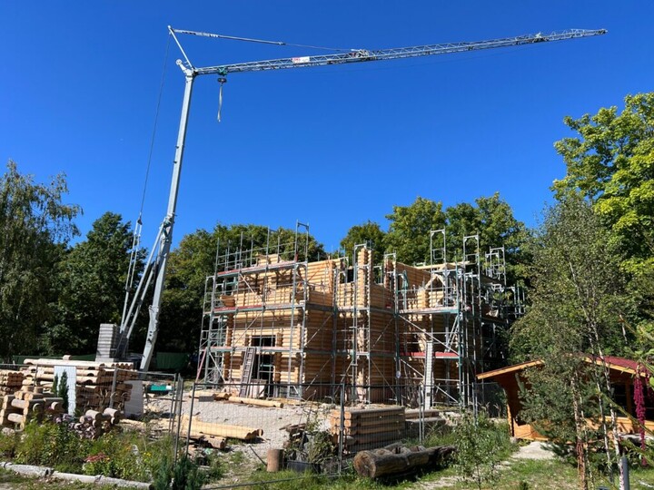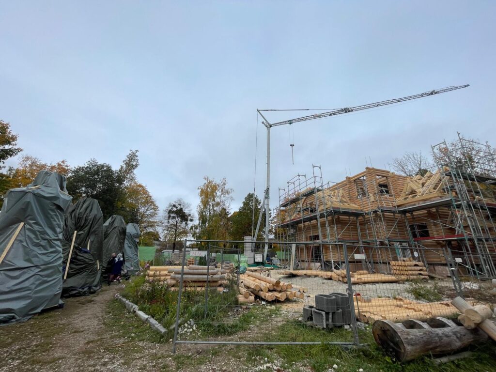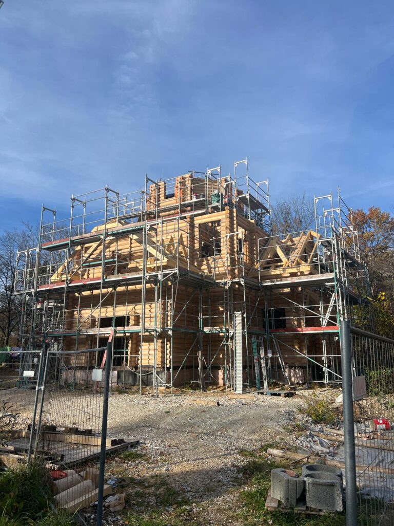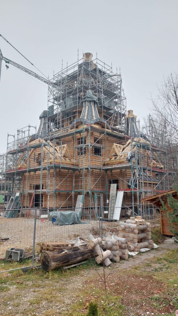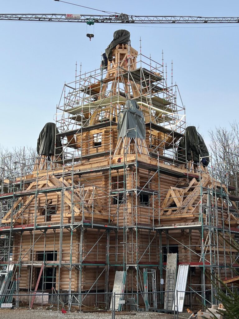 Im Herbst 2023 wurde Rundholz aus dem Bayerischen Wald zur Baustelle geliefert. Nach der Materialvorbereitung und organisatorischen Maßnahmen konnte im Frühjahr 2025 mit der Errichtung der Kirchenwände begonnen werden. Diese Arbeiten wurden Anfang November 2025 abgeschlossen.