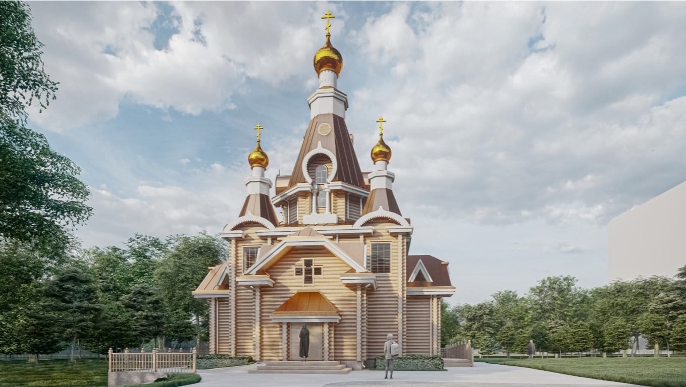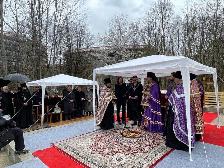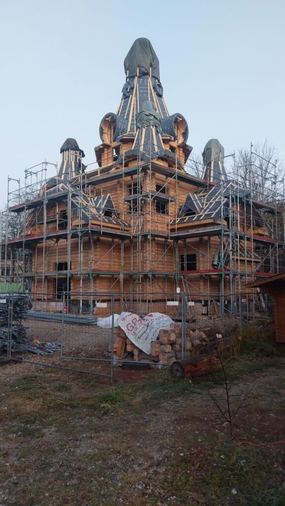 Bei seinem Besuch besichtigte Erzbischof Tichon von Rusa den Rohbau der Holzkirche, die als neues geistliches Zentrum der Gemeinde entsteht. Der Grundstein für den Kirchenbau wurde am 24. März 2023 gelegt.