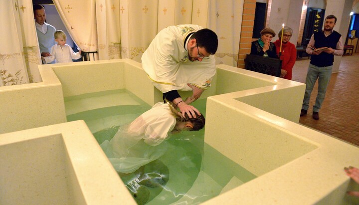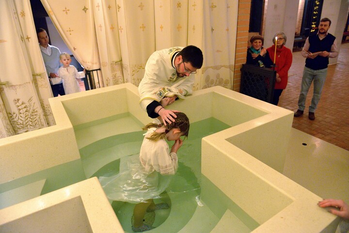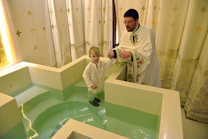 Erste Taufe im neuen Baptisterium des orthodoxen Kirchenzentrums München