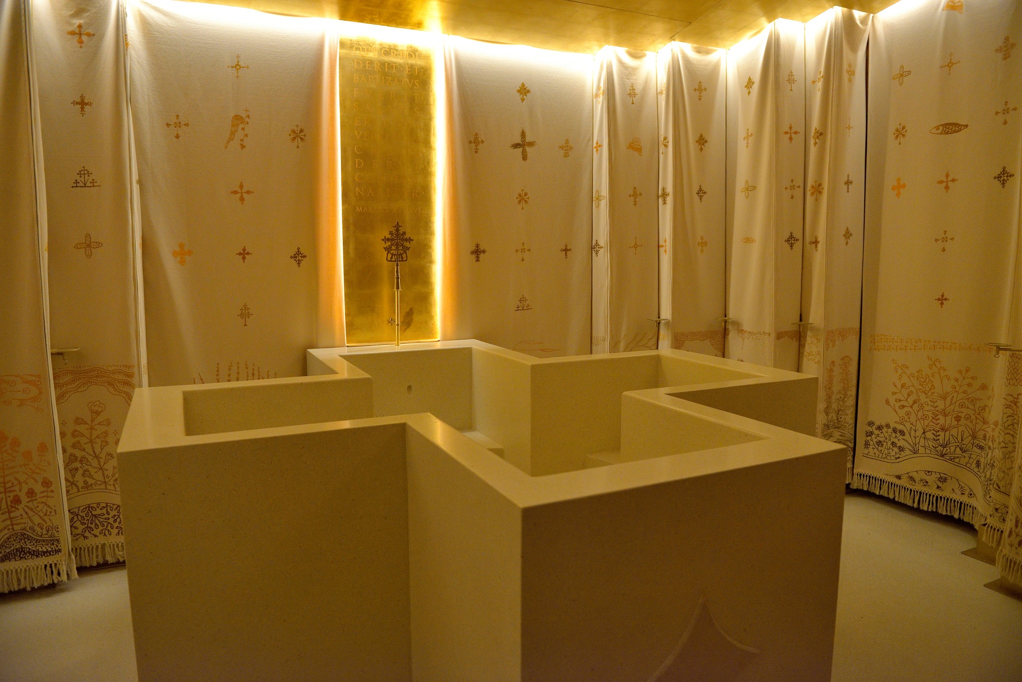 Gestalterisch wurde das Baptisterium als eigener sakraler Raum konzipiert, der eine würdige, warme Atmosphäre für die Feier des Sakraments schafft. Neben der Gemeinde in München steht es auch Gläubigen anderer orthodoxer Gemeinden offen, die entsprechend vorbereitet wurden.