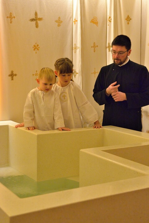 Getauft wurden die beiden Kinder Anastasia und Michael, deren Eltern aus Belarus stammen. Zuvor hatten sowohl die Kinder als auch ihre Eltern an einer vorbereitenden Katechese teilgenommen. Die Taufe fand in einem feierlichen Rahmen statt, der eigens für das Sakrament gestalteten Raum bot.