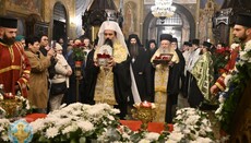 Metropolit Chrysostomus berichtete von Wundern, die dem heiligen David von Euböa und dem heiligen Johannes von Russland zugeschrieben werden, und bat um ihren Schutz und Segen für Patriarch Daniil und die Bulgarische Kirche.