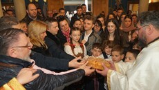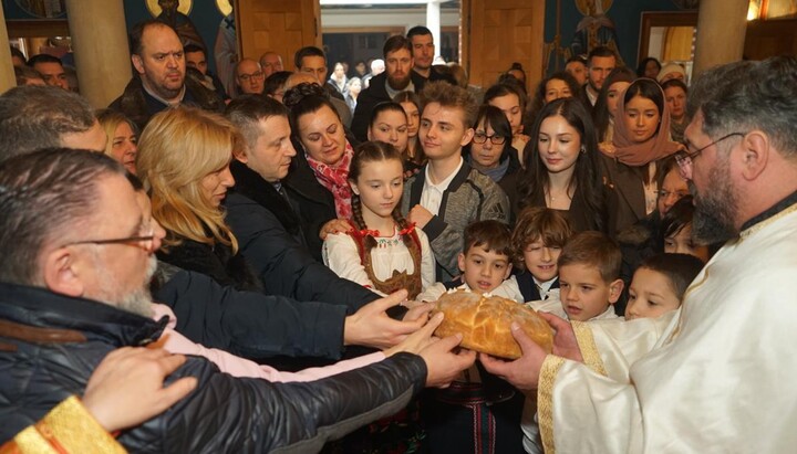Nach der Liturgie wurden die Slava-Gaben gesegnet, die von den diesjährigen Taufpaten Miroslav Dinić und Dr. Gordana Dinić vorbereitet worden waren. Anschließend versammelte sich die Gemeinde im Gemeindesaal zu einem Kultur- und Unterhaltungsprogramm, an dem auch Kinder der Serbischkurse der Gemeinde mitwirkten.