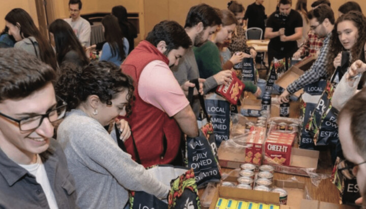 Gemeinden in sechs Bundesstaaten packen am Sonntag vom Jüngsten Gericht gemeinsam Lebensmittelpakete für Bedürftige.