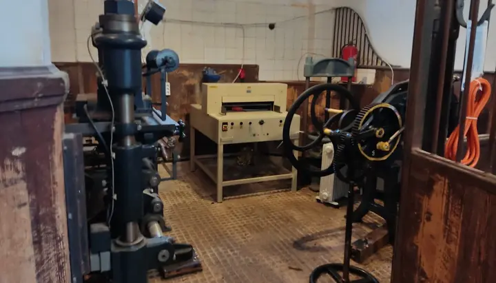 In einer der Pferdeboxen nahm zudem die Buchbinderei des Klosters ihren Betrieb auf. Sie ermöglicht es der klostereigenen Druckerei erstmals, kleinere Buchauflagen mit festem Einband selbst herzustellen. Ausgestattet ist die Werkstatt unter anderem mit einer Fadenheftmaschine, einer Heißprägepresse und mehreren Schneidemaschinen. Ein Papierschneider aus dem Jahr 1879, der bereits im alten Kloster verwendet wurde, ist weiterhin im Einsatz.