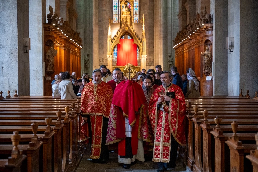 Im Mittelpunkt stand der gemeinsam von elf Geistlichen gelesene Akathistos zum Heiligen Kreuz. Das Evangelium wurde auf Rumänisch und Deutsch vorgetragen, ergänzt durch Litaneien und ein Friedensgebet, das derzeit im gesamten rumänischen Patriarchat empfohlen wird. Viele Gläubige nutzten die Gelegenheit, ein ausgestelltes Fragment des Heiligen Kreuzes in der romanischen Stiftskirche zu verehren.