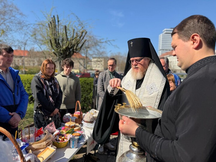 Im Anschluss an die Liturgie segnete der Erzbischof nach alter Tradition Brot und Wein sowie die österlichen Speisen. Auf dem Kirchhof wurde die festliche Ostertafel gesegnet. Die Feier markierte damit den Übergang von der Trauer des Karsamstags zur Freude des bevorstehenden Osterfestes, das nach orthodoxem Verständnis bereits „vor den Toren der Herzen“ stehe.