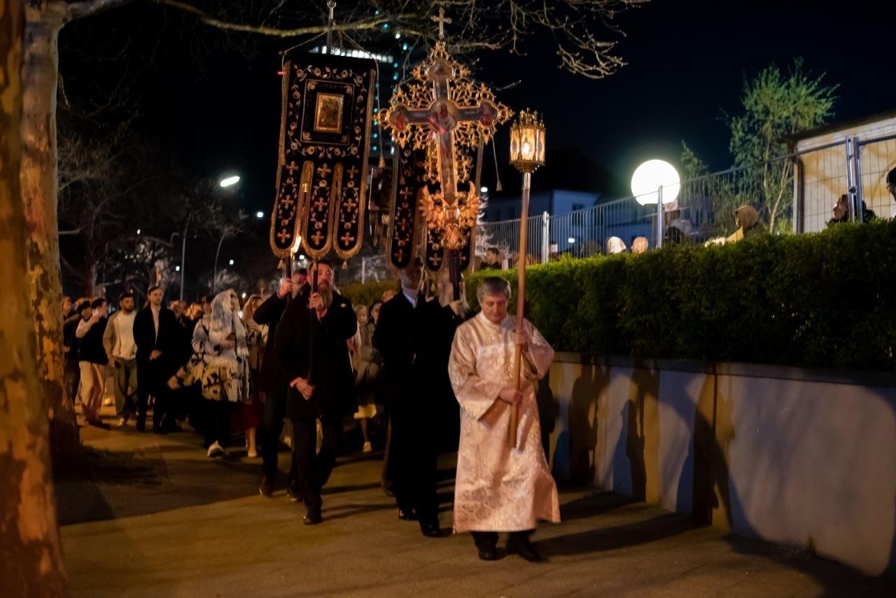 Begleitet wurde der Gottesdienst von einem Fest- und einem Jugendchor, während die traditionelle Osterprozession unter dem Gesang des Sticherons „Deine Auferstehung, o Christus, unser Erlöser“ um die Kathedrale führte. Während der Matutin verlas Erzbischof Tichon die bekannte Osterkatechese des heiligen Johannes Chrysostomus.