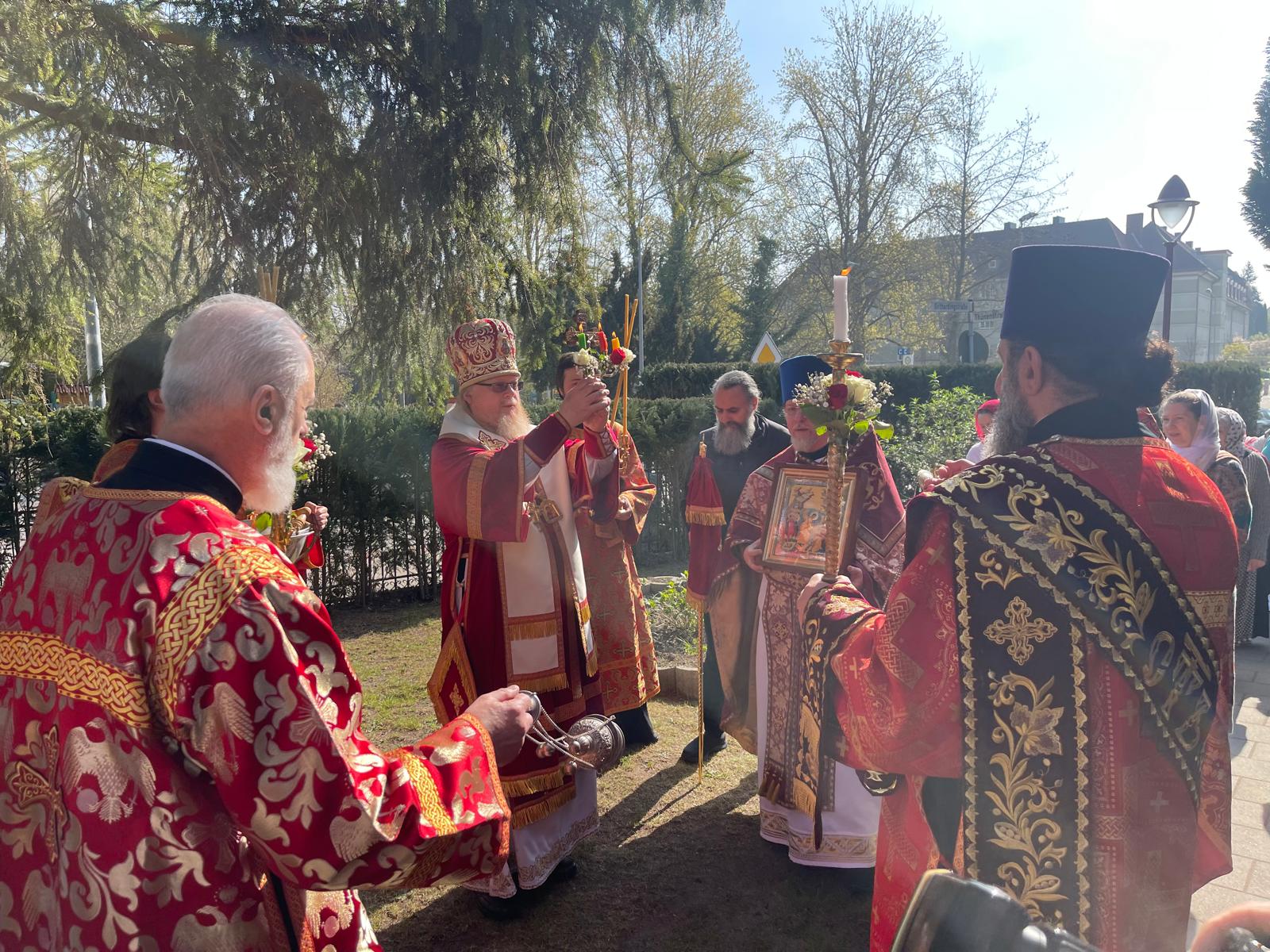 Am Freitag der Strahlenden Woche (17. April 2026) hat Erzbischof Tichon von Rusa, Administrator der Diözese von Berlin und Deutschland der Russischen Orthodoxen Kirche, in der Rostocker Gemeinde der Heiligen Seligen Xenia von Petersburg die Göttliche Liturgie gefeiert. Anlass war das Fest der Ikone der Gottesmutter „Lebensspendender Frühling“, das in der orthodoxen Tradition eng mit Heilung und geistlicher Erneuerung verbunden ist. Darüber berichtete die Diözese auf ihrer Webseite.