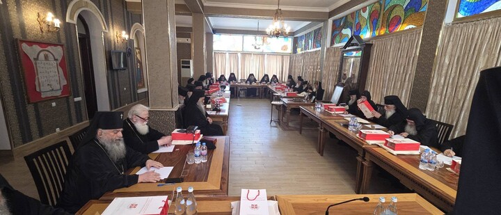 Vor Beginn der Sitzung feierte Metropolit Schio (Mujiri) in Konzelebration mit den Bischöfen einen Gedenkgottesdienst für den verstorbenen Patriarchen von ganz Georgien, Ilia II..