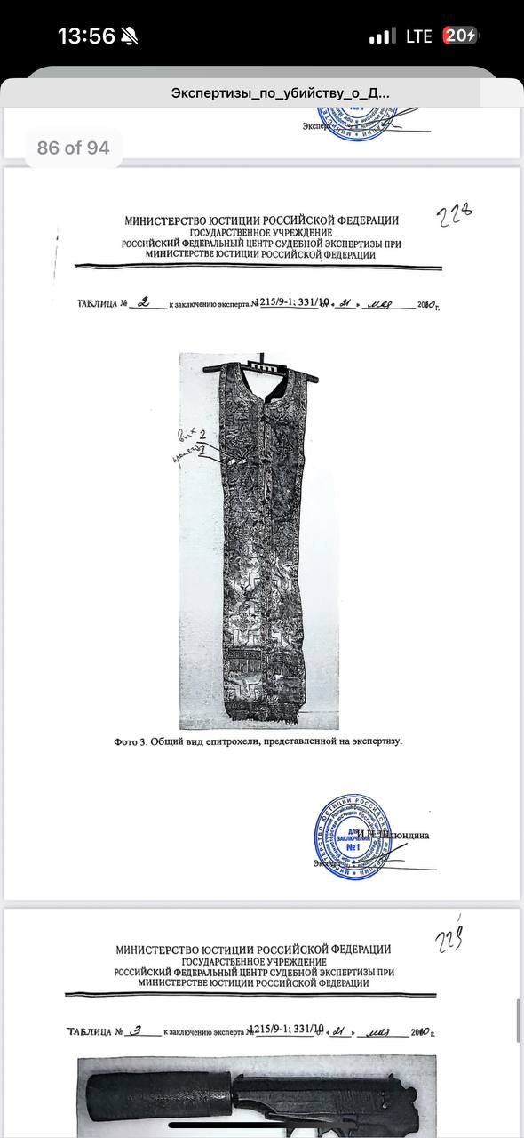 Bei der Durchsicht stieß Istina auf zahlreiche Widersprüche zwischen der offiziellen Version und den Dokumenten. Besonders aufmerksam wurde sie auf die Fotos des Leichnams, die ballistische Untersuchung und die Beschreibung der Verletzungen. Istina behauptet, ihr Vater Daniil habe mindestens sieben Schüsse sowie Messerstiche erlitten – was der Darstellung eines schnellen Mordes durch einen einzelnen Täter völlig widerspreche.