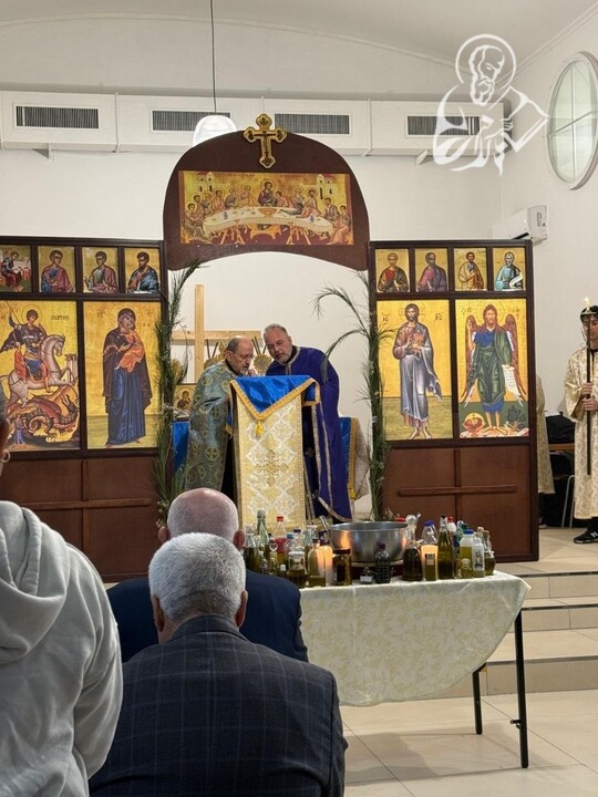 In Cologne, the Great Oil Blessing was celebrated in two parishes of the Antiochian Orthodox Metropolis. In the evening, the faithful gathered both in St. George parish and in the cathedral and episcopal seat of St. Dimitrios to participate together in this special divine service. This was reported by The celebration began around 7:00 PM and lasted until about 9:00 PM. In a dignified and spiritually enriched atmosphere, prayers and readings were offered, while the faithful were anointed with the blessed oil during the course of the divine service. The Oil Blessing is among the significant sacraments of the Church and is closely connected with the petition for healing and strengthening of soul and body.