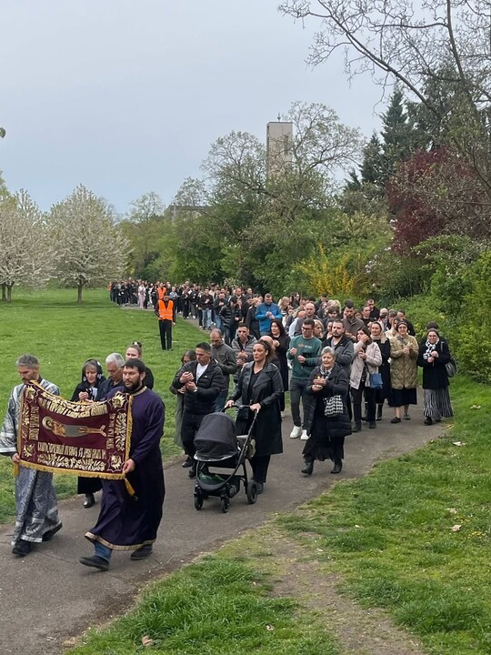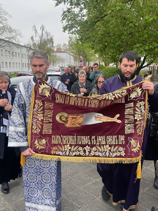 Στη σερβο-ορθόδοξη κοινότητα στο Μάνχαϊμ τελέστηκε τη Μεγάλη Παρασκευή επίσημη θεία λειτουργία με την έκθεση του Επιταφίου του Χριστού. Η λειτουργική πράξη θυμίζει την κάθοδο του σώματος του Ιησού από τον σταυρό και την ταφή του. Γι' αυτό ανέφερε η κοινότητα στο Instagram. Κατά τη διάρκεια της θείας λειτουργίας ο Επιτάφιος μεταφέρθηκε από το ιερό και τοποθετήθηκε στο κέντρο της εκκλησίας για προσκύνηση. Οι πιστοί πλησίασαν για να στοχαστούν με προσευχή και σιωπή τα πάθη και τον θάνατο του Χριστού.